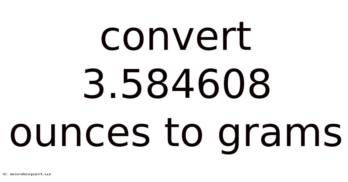 The seemingly simple task of converting 3.584608 ounces to grams opens a door to understanding fundamental concepts in unit conversion and the importance of precision in measurement. This full breakdown will not only show you how to perform this specific conversion but also explore the underlying principles, provide practical examples, and break down the history and significance of both ounces and grams as units of measurement. This article will equip you with the knowledge to confidently tackle similar conversions in the future That's the part that actually makes a difference..